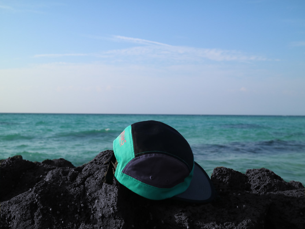 RNMS JEJU ISLAND CAMPCAP은 제품명에서 유추해볼 수 있듯이, 현무암과 에메랄드 빛 바다로