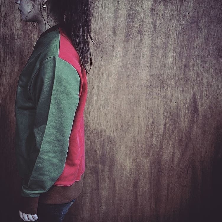 RNMS의 첫 스웨트셔츠 , 즉 맨투맨 제품입니다. RNMS에서 중시하는 색면의 분할과 그 색과의 조화를 기반으로 전개해봤는데, 우선 색을 선정하기 앞서 면을 어떻게 분할을 한후, 색을 적용할 것인지에 대해 고심했습니다. 분할하는 다양한 방법들이 있겠지만, 이 제품의 경우 맨투맨의 앞판과 뒷판, 그리고 시보리(絞り) 이렇게 크게 세 부분으로 나눈후, 각기 다른 색을 적용해보는 것으로 방향을 잡았습니다. 3가지 색은 GREEN, RED, BROWN 색 입니다.